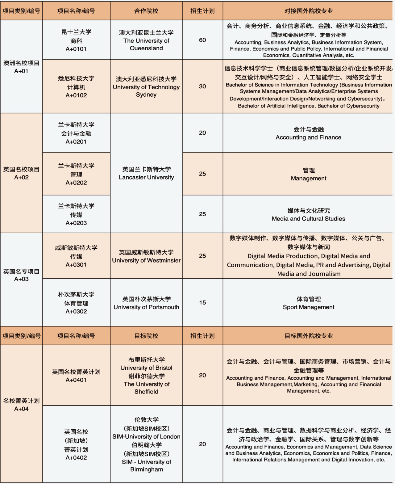 国际本科A+类项目