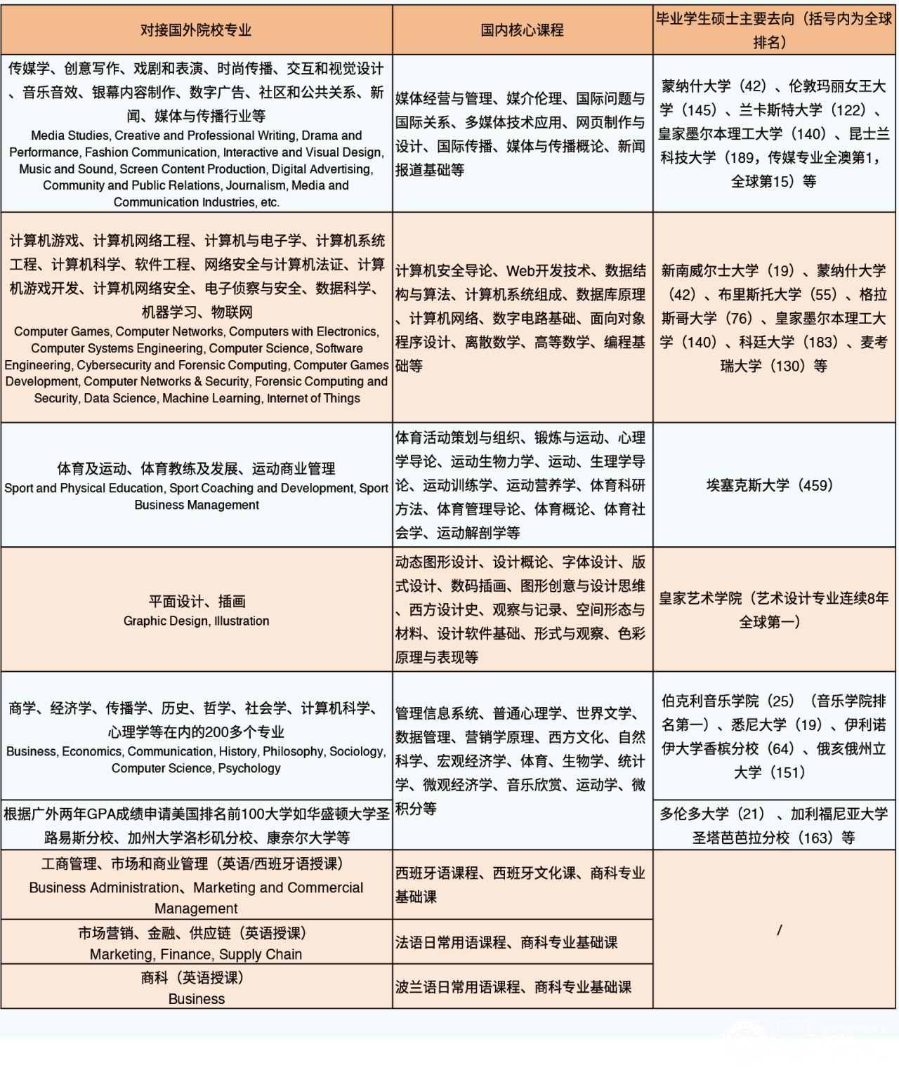 一、国外名校/名专业升学通道,本科完成国外一流大学/专业学位,硕士实现QS世界排名200以内大学/专业,成为高素质、极强竞争力的国际化专业人才.